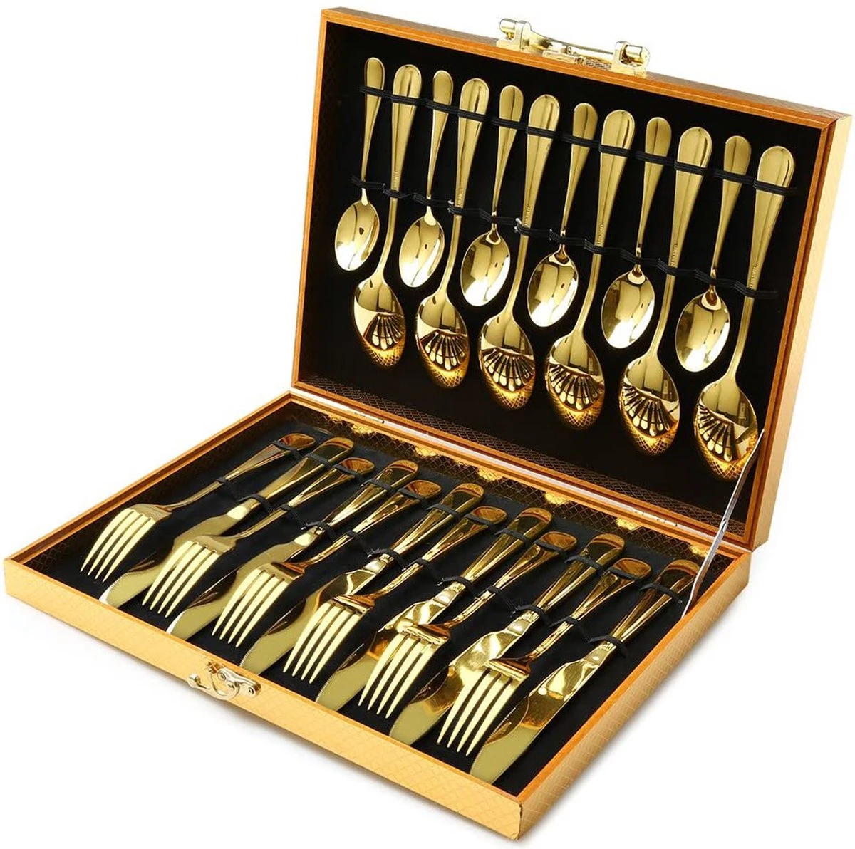 Bestekset 24-delig Goudkleurig – Bestek Voor 6 Personen – Tafelbestek Inclusief Bestekcassette