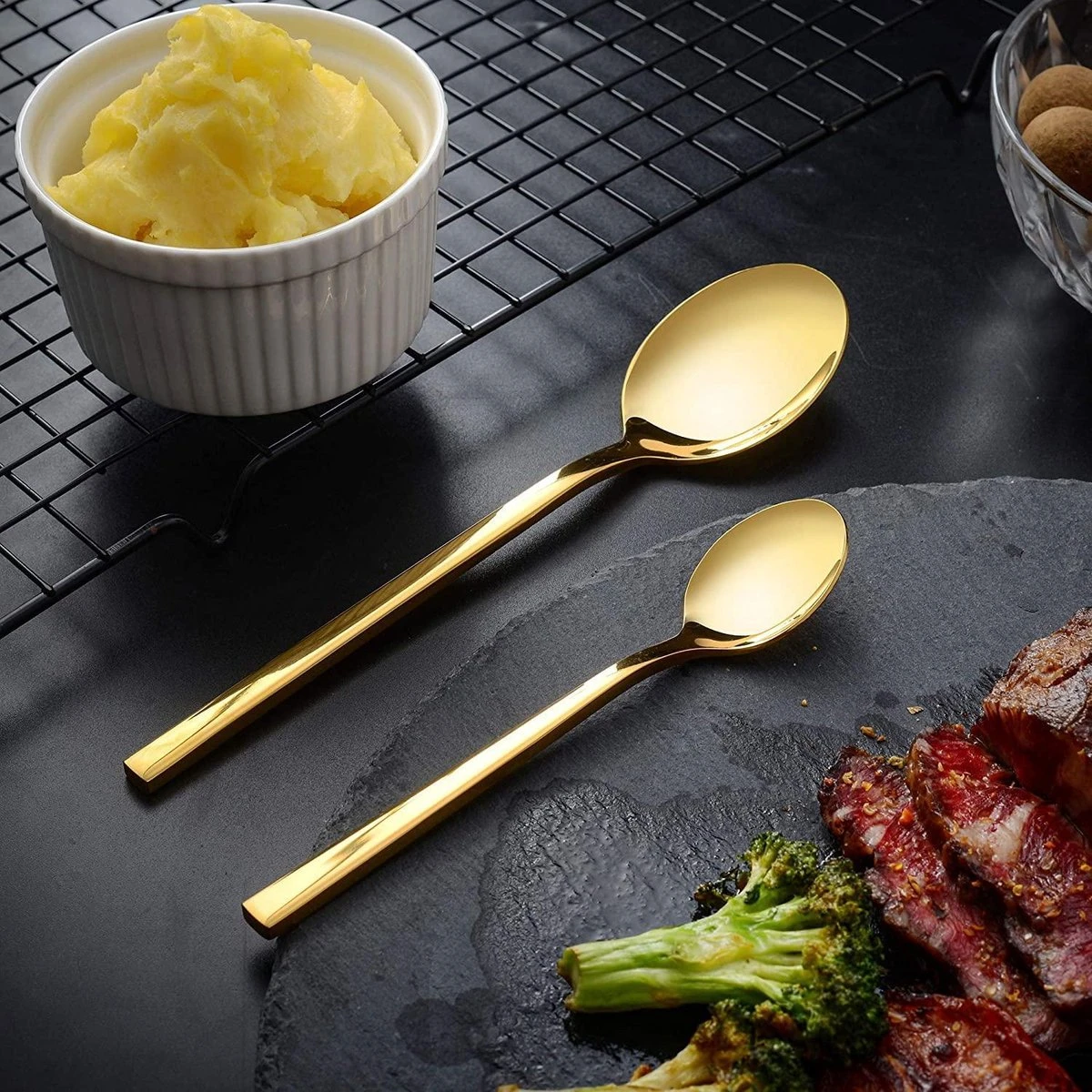 De set bevat 6 stuks voor elk van de volgende items: dinervork, mes, theelepel en ook tafellepel, wat ideaal is voor grote familie, feesten, entertainment, restaurant, hotel, bruiloft, camping en meer.