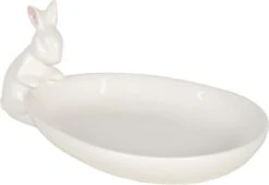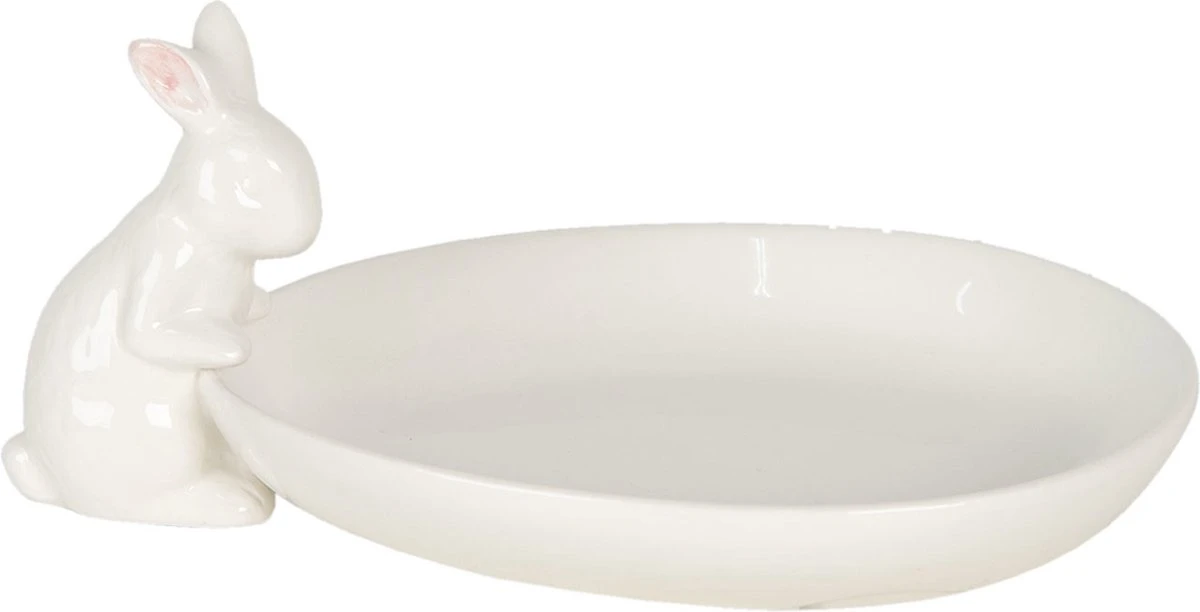 Clayre & Eef Serveerschaal 20x13x8 Cm Wit Keramiek Ovaal Konijn Presenteerschaal Dienblad Decoratie Schaal