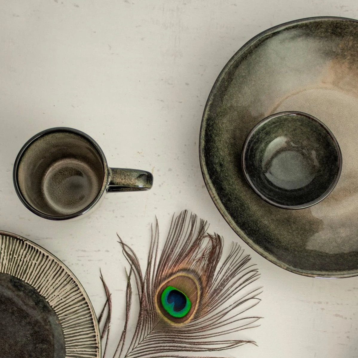 De pure uitstraling van de woudgroene serviesset van Organic by Dutch Rose Amsterdam maakt van je eettafel een waar feestje. Met dit 16-delige servies haal je meteen alle essentieumlle benodigdheden in huis voor ontbijt, lunch of diner voor vier personen.