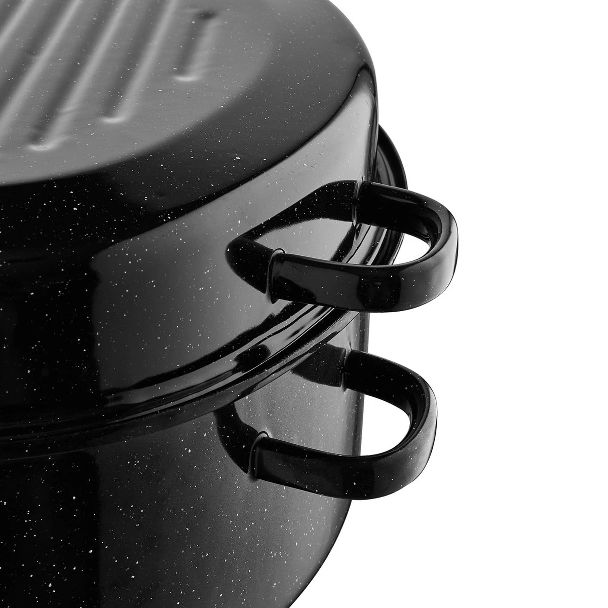 Hou je ook zo van stoofschotels, ovenbraadstukken en groentepotten? Met deze braadpan van geëmailleerd staal heb je een grote pan van maar liefst 7 liter. De deksel is tevens te gebruiken als grillpan. Door de aparte handvatten is hij makkelijk handbaar en eenvoudig te verplaatsen!