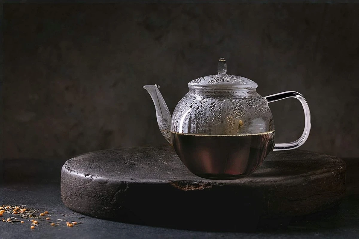 Feelino “Special Edition” luxe handgemaakte theekan met 1300 ml inhoud (volledig tot de rand), roestvrijstalen theezeef en glazen deksel
