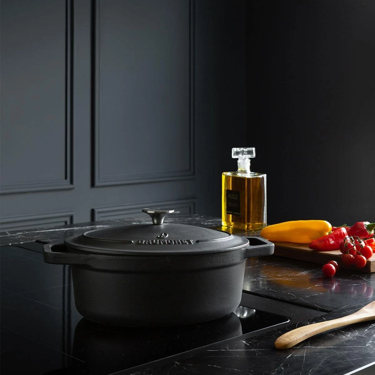 Gietijzeren Braadpan – Sudderpan Zwart Van Daumonet – Ovaal – Ø 29 Cm – 3 Liter – 100% PFAS & PFOA Vrij – Emaille – Geschikt Voor Alle Warmtebronnen – Elektrisch – Gas – Halogeen – Inductie – Keramisch – Vaatwasserbestendig