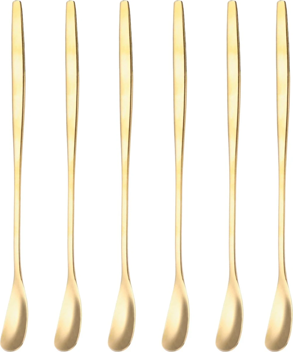 House Of Husk Latte Macchiato Lepels Set – Lange Theelepels – Koffielepels – Longdrinklepels – Barlepel – RVS – 6 Stuks – 17CM – Goud