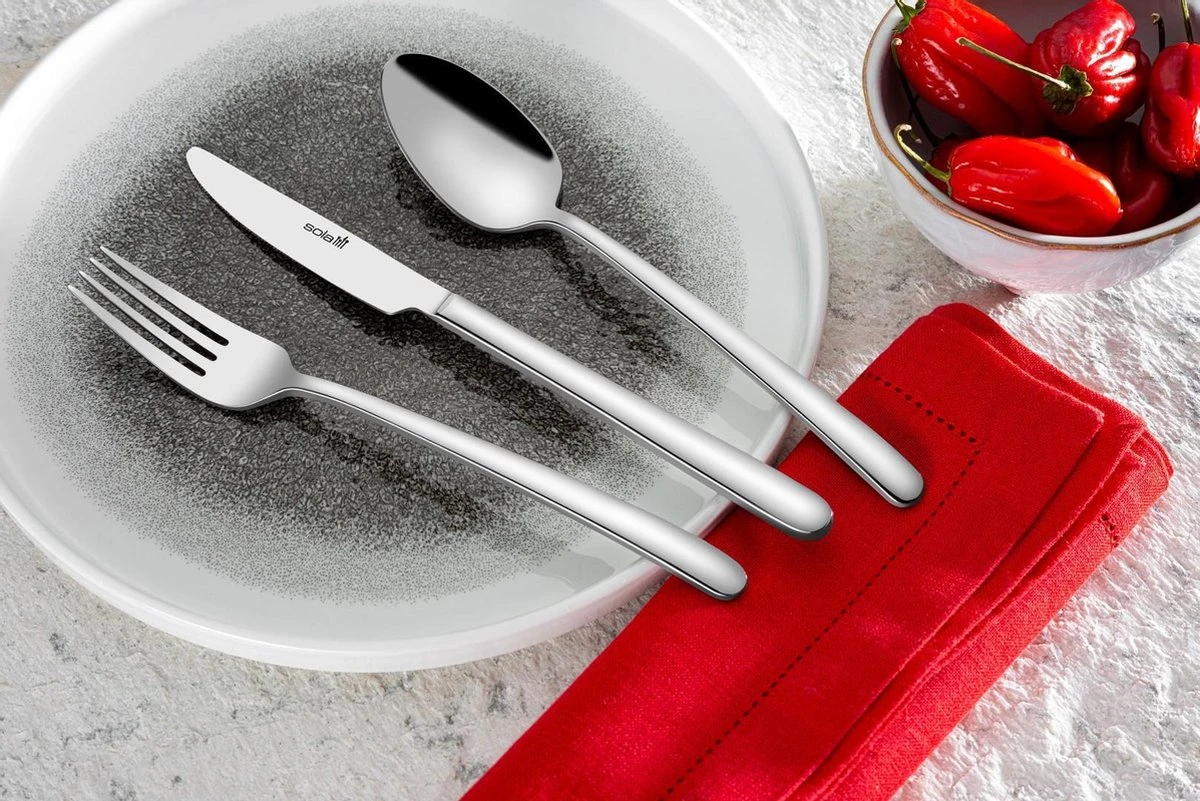 Elk stuk heeft een stevig en verzwaard handvat wat een goedkoop gevoel voorkomt en maximaal comfort biedt tijdens het vasthouden. Elk stuk wordt geleverd met een mooi en trendy design en opvallende uitstraling. Deze Sola bestekset is geschikt voor intensief gebruik in zowel chique als informele restaurants of thuis voor elke diner situatie.