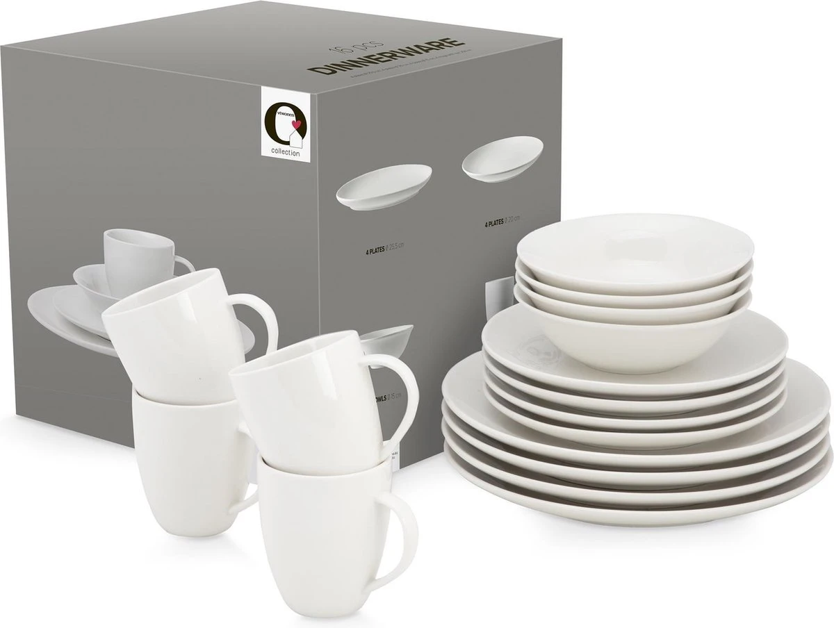 Hoogwaardig porselein Wit 16-delige serviesset Vaatwasser-, magnetron- en ovenbestendig